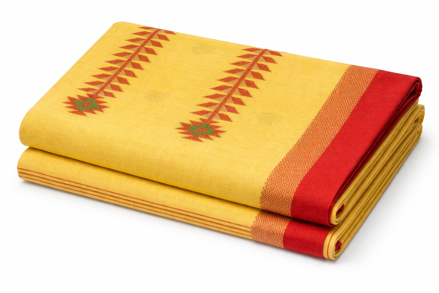 Design: Traditional woven motifs with contrasting border