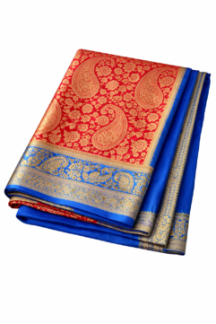 Handwoven pure silk saree from Varanasi, designed by a National Award–winning designer. Featuring traditional paisley motifs with an ornate border and pallu, and certified with Silk Mark and Handloom Mark issued by the Government of India. Suitable for weddings, festive occasions, and formal traditional wear.