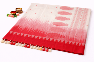 Authentic West Bengal handwoven saree made from 100% pure cotton. Soft, breathable, and highly comfortable for daily wear. Comes with Handloom Mark (Govt. of India certified) and a free matching blouse piece. Lightweight with traditional motifs, perfect for office, casual, and everyday ethnic wear.