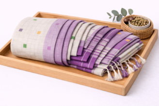 Pure cotton handloom saree with a subtle checked weave and contrast border. Soft, breathable, and highly comfortable for daily and office wear. Certified with Handloom Mark and includes a free matching blouse piece.